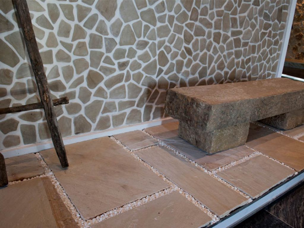 Břidlice, andezit, rula nebo již zmiňovaný kvarcit a porfyr skvěle vyplní i pochozí plochy. Na rozdíl od dřeva se nemusíte bát poškození vodou a nečistotami. Přírodní kámen se skvěle hodí pro pokládku ve vstupních prostorách, na chodbách i schodištích. Umožňuje i kombinaci s podlahovým vytápěním. Skvěle působí jako dlažba chodníků a příjezdových cest.