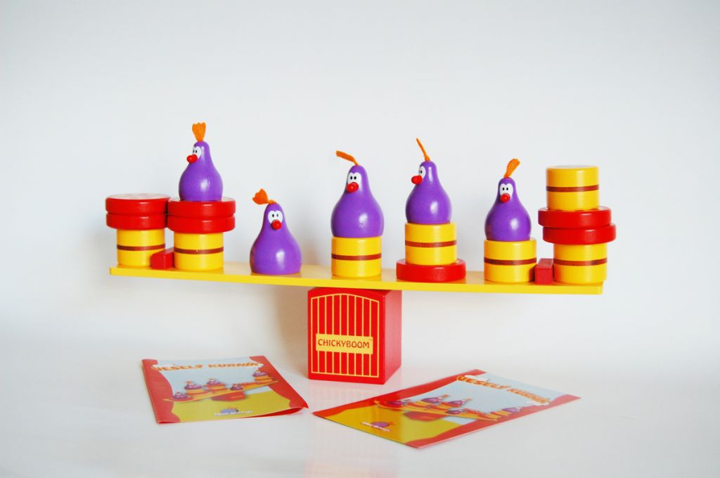 Opravdu veselá a zábavná hra, která děti učí pochopit princip rovnováhy. Veselý kurník má řadu obměn, záleží na tom, jak jednotlivé hrací díly děti na plošinu/ bidýlko naloží. Je určena pro děti od čtyř let.
